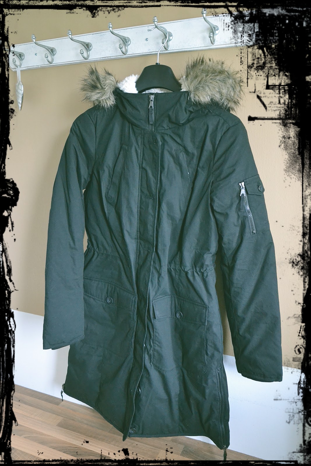Äidin talvivarustus hoituu enimmäkseen vanhoilla, mutta jotakin uutta sentään vaatekaappi sai piristykseksi. Vanha untuvatakkini, monta vuotta palvellut sellainen alkaa olla jo tiensä päässä, sillä saumat repeilee ja untuvat lentelee niistä ulos ja lisäksi vetoketjukin on rikki. Siispä oli tilausta uudelle, lämpimälle takille. Kriteereinä oli tumma väri, riittävän pitkä helma ja että takkia voisi käyttää talviulkoilussa mutta se ei kuitenkaan saisi olla liian sporttinen, jotta sillä voisi lähteä töihin tai kaupungillekin.